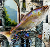Antique Putti Figurine Planter with Wicker Baskets and Berries - Majolica Style